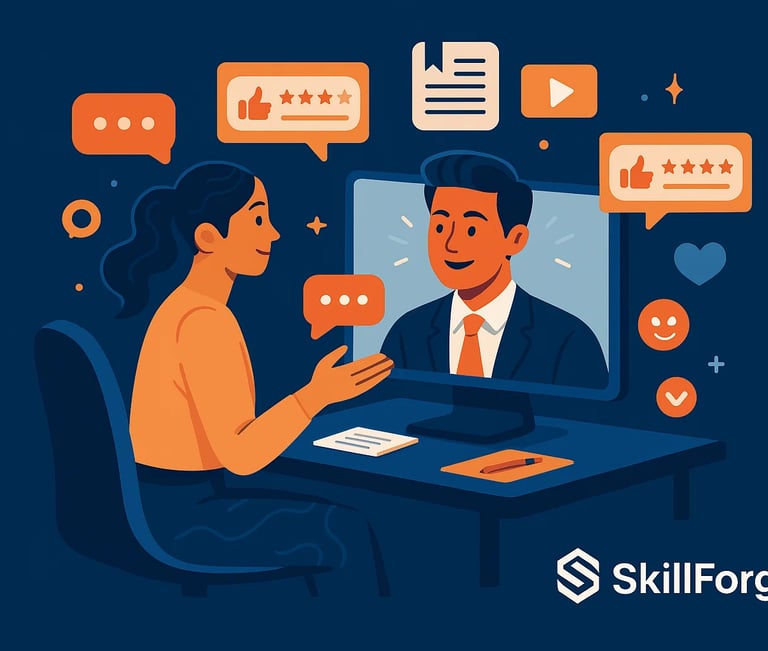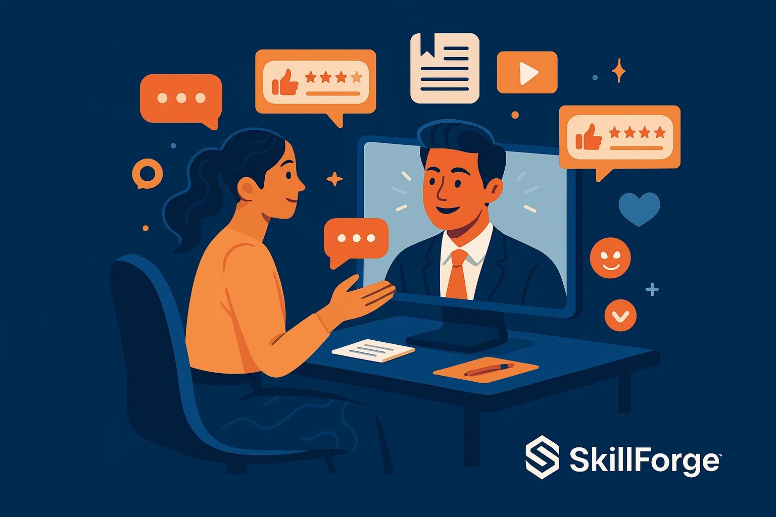 SkillForge® supports meaningful skill development through AI-powered tools that enable sales representatives to practice their sales conversations with an AI avatar that speaks and makes facial expressions like a real person and is front-loaded with your specific sales process and product knowledge to better grade performance.